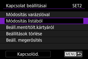 A kapcsolat varázsló használatával módosíthatja a fényképezőgépen mentett kapcsolati beállításokat.