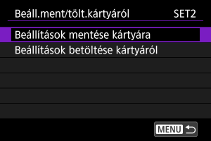 Válassza ki a(z) [Beáll.ment/tölt.kártyáról] lehetőséget.