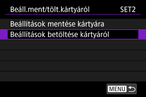 Válassza ki a(z) [Beállítások betöltése kártyáról] lehetőséget.