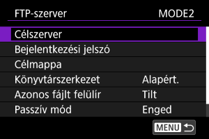 A konfigurálást a(z) [FTP-szerver] → [Megbíz. a célsz.ben] menüpontban végezheti el.