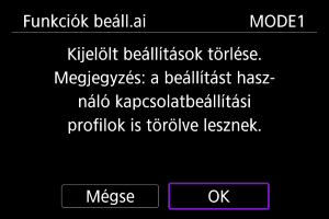 A beállítások törléséhez válassza a(z) [OK] lehetőséget.