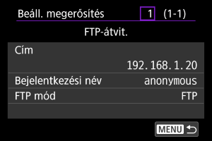 A részletekért lásd: Képek átvitele FTP-szerverre.