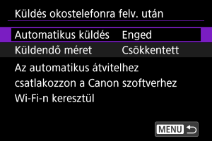 A(z) [Okostelefon-beállítások] [Küldés okostelefonra felv. után] elemének kiválasztásával beállíthatja az automatikusan küldendő fájlméreteket.