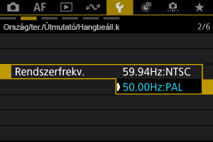 Állítsa be a videorendszert a megjelenítéshez használt bármilyen tévékészülékhez. Ez a beállítás a videók készítésekor elérhető képfrekvenciákat határozza meg.