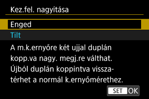 Ujjával duplán koppintva felnagyíthatja a menüképernyőket. Az eredi megjelenítési méret visszaállításához koppintson ismét duplán a képernyőre.