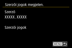 A szerzői jogi információk beállítása esetén a készülék a kép Exif-adataiban rögzíti a megadott információkat.