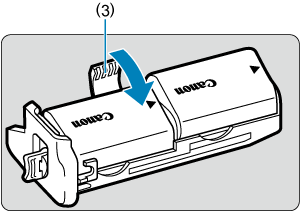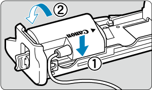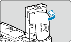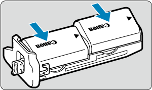 - A(z) DR-E6P egyenáramú adaptert (külön kapható) az akkumulátorokkal azonos módon kell csatlakoztatni.