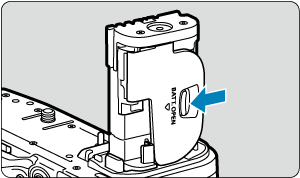 - A külső elemtartó eltávolítása előtt kapcsolja ki a fényképezőgépet, és távolítsa el az akkumulátorokat.