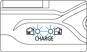 - Ha nem villan fel a töltésjelző lámpa, vagy probléma merül fel a töltés során (amelyet a töltésjelző lámpa villogása jelez), húzza ki a tápkábelt, helyezze vissza az akkumulátort, várjon néhány percet, majd csatlakoztassa vissza a kábelt. Ha a probléma ezután sem szűnik meg, vigye el a fényképezőgépet a legközelebbi Canon szervizközpontba.