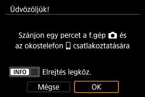 Az okostelefon csatlakoztatására vonatkozó utasítások megjelennek, ha a beállítási képernyőn a(z) [OK] lehetőséget választja ki ().