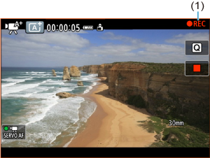REC] (1) látható, a képernyő körül piros keret jelenik meg, és világít a felvételjelző lámpa.