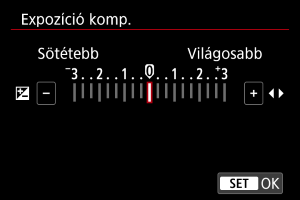 : Expozíció komp.] lehetőséget, és ezen a képernyőn állítsa be az expozíció mértékét.