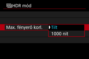 - A(z) [Tilt] beállítás esetén nincs korlátozva a maximális fényerő. Ez a beállítás akkor javasolt, ha a képeket 1000 nitnél nagyobb fényerőt támogató monitoron fogja áttekinteni.