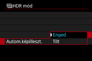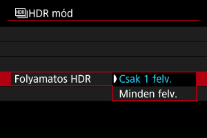 - A(z) [Csak 1 felv.] lehetőség beállítása esetén a HDR-felvétel automatikusan kikapcsol a felvételkészítés után.