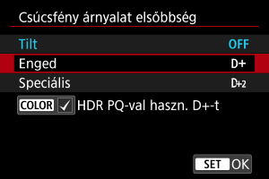 : Csúcsfény árnyalat elsőbbség] beállítása [Enged], és ez nem módosítható, ha a(z) [