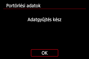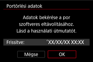 - A kép rögzítésekor a fényképezőgép megkezdi a portörlési adatok gyűjtését. A portörlési adatok beolvasása után megjelenik egy üzenet.