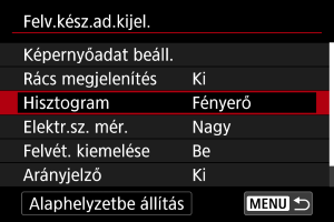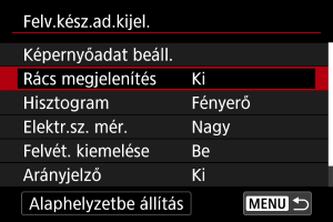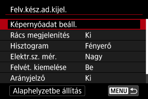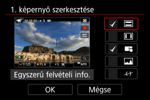 Testreszabhatja, hogy felvételkészítéskor milyen adatok és képernyők jelenjenek meg a fényképezőgépen.