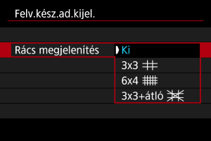 Ha a rögzített videó szerkesztésekor módosítani fogja a képarányt, képarányjelölőket jeleníthet meg a videófelvétel képernyőjén (készenlétben és a felvétel során), hogy figyelemmel kísérhesse a szerkesztés utáni végleges látószöget.