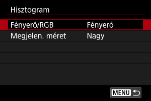 Kiválaszthatja a hisztogram tartalmát és megjelenítési méretét.