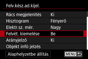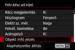 Válassza ki a(z) [Objekt infó jelzés] lehetőséget.