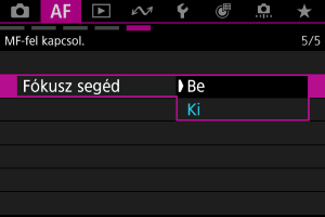 A(z) [: Fókusz segéd] opció [Be] értékre állítása megjelenít egy segédkeretet, amely segít a fókusz beállítási irányának és a módosítás mértékének meghatározásában.
