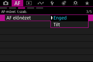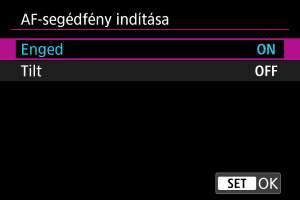 Lehetőség van arra, hogy letiltsa vagy engedélyezze a fényképezőgép, illetve az EOS fényképezőgépekhez tervezett Speedlite vakuk AF-segédfényének indítását.