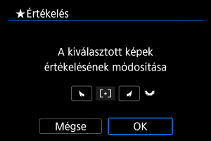 : Értékelés] menüpontban a(z) [Mappa összes képe] vagy a(z) [Kártya összes képe] lehetőséget választja, a mappában vagy a kártyán lévő összes kép értékelést kap.