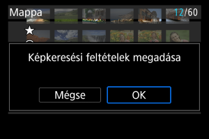 Lehetőség van arra, hogy a megjelenítendő képeket meghatározott keresési feltételek szerint szűrje. Miután megadta a képkeresési beállításokat, megjelenítheti csak a megtalált képeket. Az ilyen módon szűrt képeket védelemmel vagy értékeléssel láthatja el, diavetítéssel lejátszhatja, törölheti, illetve egyéb műveleteket alkalmazhat azokon.