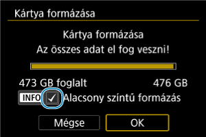 ] jelet a(z) [Alacsony színtű formázás] lehetőséghez, majd válassza ki a(z) [OK] lehetőséget.