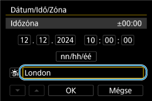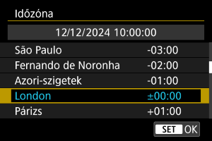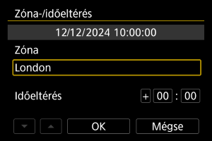 gombot, majd állítsa be az UTC-zónától való eltérést a(z) [Időeltérés] menüpontban.