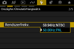 Állítsa be a videórendszert a megjelenítéshez használt bármilyen tévékészülékhez. Ez a beállítás a videók készítésekor elérhető képfrekvenciákat határozza meg.
