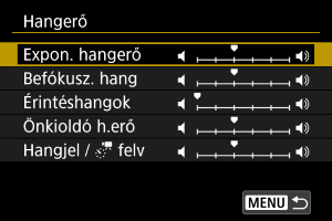 A fényképezőgép hangjelzéseinek hangereje módosítható.
