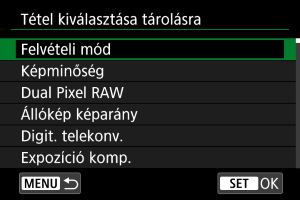 Válassza ki a(z) [Tételek kiválaszt. tárolásra] lehetőséget.