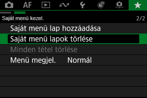 Lehetősége van az aktuális Saját menü lapot. A(z) [MY MENU*] lap törléséhez válassza ki a(z) [Lap törlése] lehetőséget.