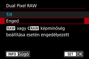 - A készülék Dual Pixel adatokat tartalmazó RAW-képet (Dual Pixel RAW-képet) fog készíteni.