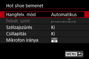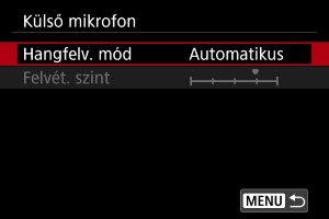 A külső mikrofon BEMENETI csatlakozóját használó külső mikrofonok beállításainak konfigurálására szolgál.