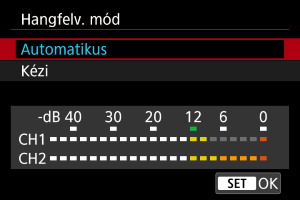 Ez a beállítás akkor érhető el, ha a(z) [ Hangfelv. mód] beállítás [Kézi] értékre van állítva.