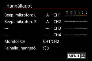 : Hang monitorozás] beállítás [Felv. monitor CH] lehetőségénél a(z) [Fejhallgató] opcióhoz beállított.