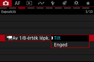 Válassza ki a(z) [: Av 1/8-érték lépk.] lehetőséget ().
