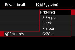 - A(z) [Egyszínű] képstílussal rögzített JPEG-/HEIF-képekből nem lehet színes képeket előállítani.