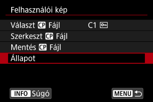 Az egyedi képfájlokra vonatkozó beállításokat a(z) [Felhasználói kép] menüben tekintheti át.