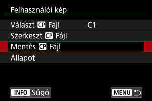 - Ha egyszerre szeretne egy egyedi képfájlt menteni és egy look fájlt regisztrálni, a look fájl regisztrálását végezze el utoljára.