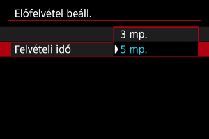 - Válassza ki a felvétel manuális indítása előtti előrögzítés időtartamát.