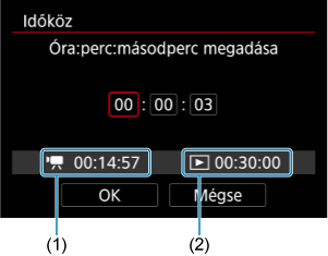 Azt az időt jelzi ki, amennyire szükség van a beállított számú felvétel elkészítéséhez a megadott időintervallumban. Ha meghaladja a 24 órát, akkor a „*** nap” jelenik meg.