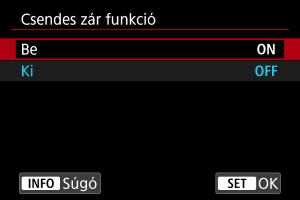 1. Válassza a(z) [Felvétel: Csendes zár funkció] lehetőséget ().
