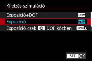 A kijelzőszimuláció használatakor a kép megjelenített fényereje és mélységélessége jobban megközelíti a felvételek tényleges fényerejét (expozícióját).