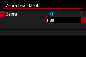 A meghatározott fényerejű képterületek felett vagy körül vonalas mintát jeleníthet meg, amelynek segítségével a videófelvétel előtt és közben könnyebben beállíthatja az expozíciót.