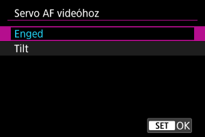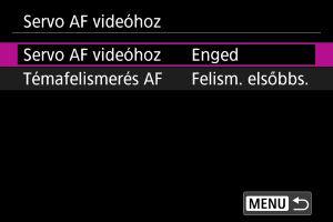 Beállíthatja, hogy használni kívánja-e a Servo AF használata videóhoz funkciót, ha nem észlelhető a(z) [: Követendő téma] () menüpontban beállított téma.