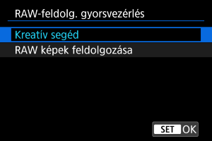 Kiválaszthatja a RAW-képek feldolgozásának típusát, amelyet végre tud majd hajtani a Gyorsvezérlés képernyőről.