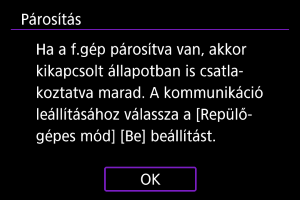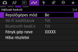 Ha nem szeretné fenntartani a Wi-Fi- / Bluetooth-kapcsolatot, amikor a fényképezőgép ki van kapcsolva, állítsa a [: Repülőgépes mód] beállítást [Be] értékre, vagy a [